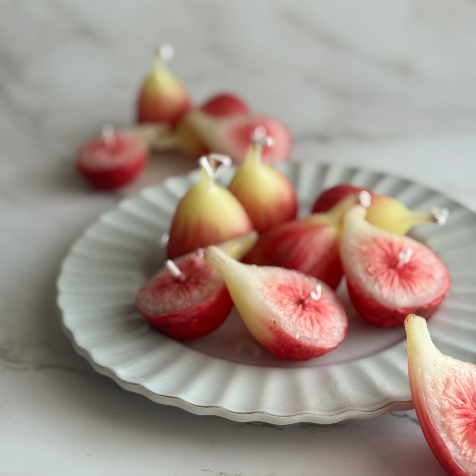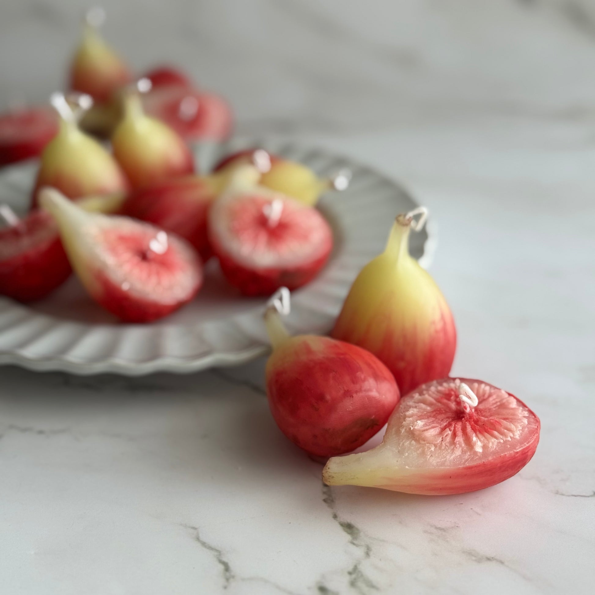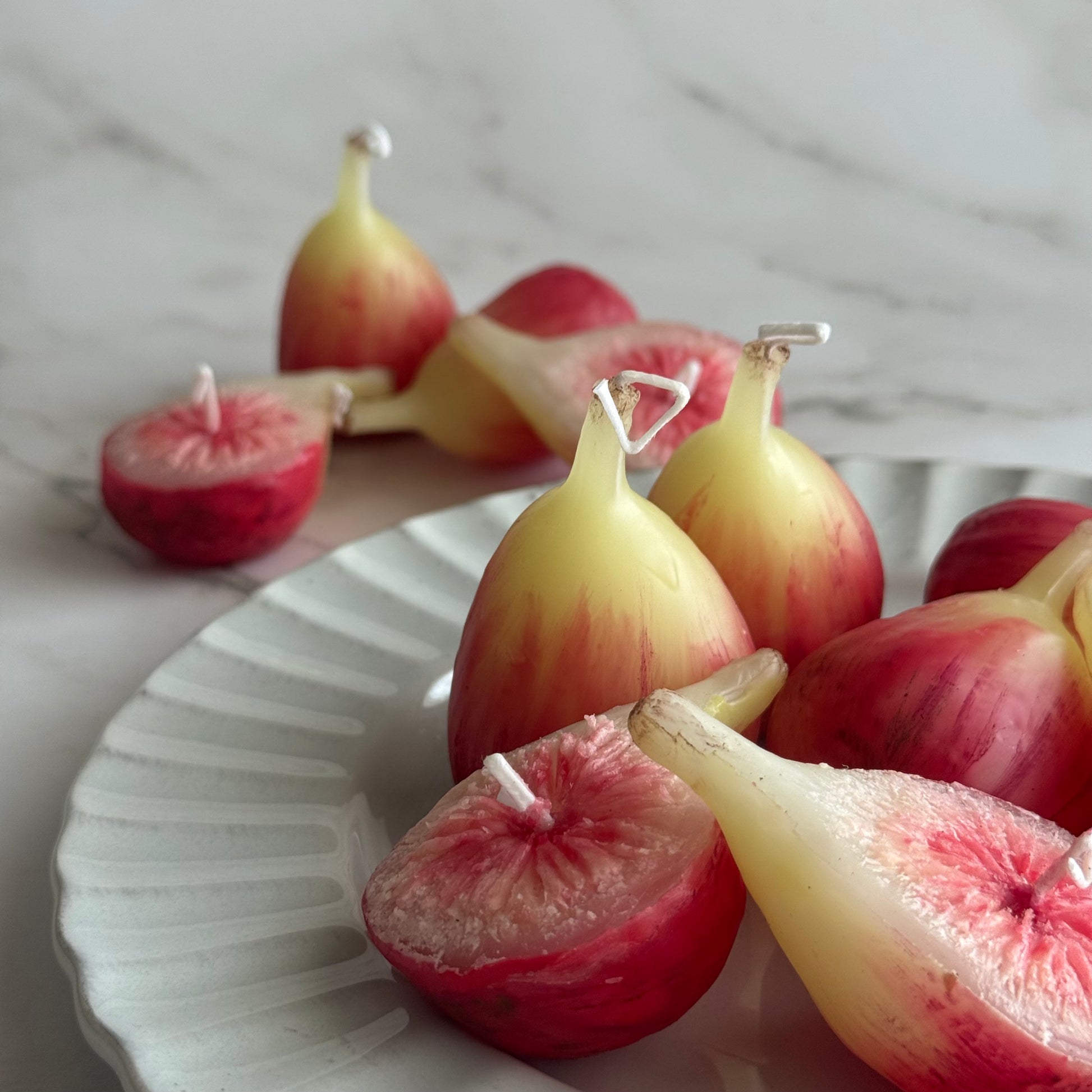 本物みたいなイチジクのキャンドル、丸実・半実一つずつのセットです。