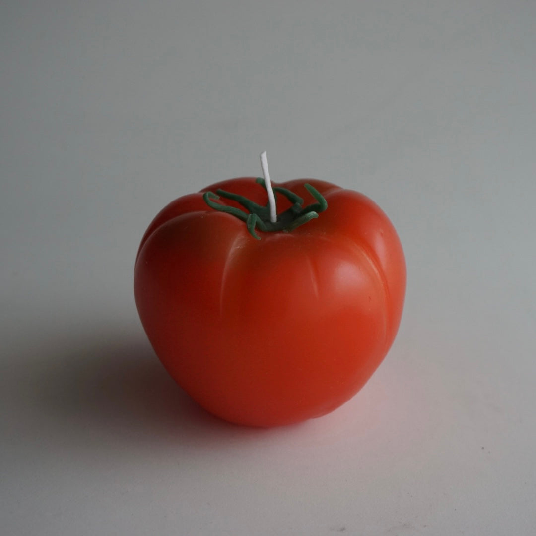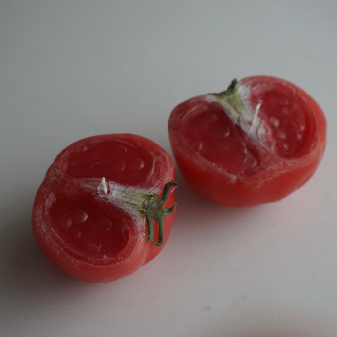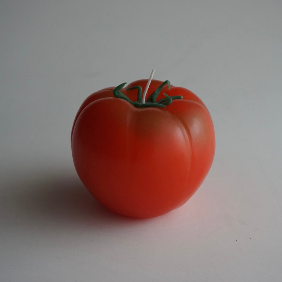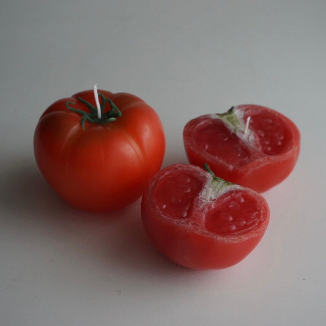 「えっ、これって本物のトマト?」と思わず二度見してしまうほどリアルなキャンドル。丸実・半実別売りです。